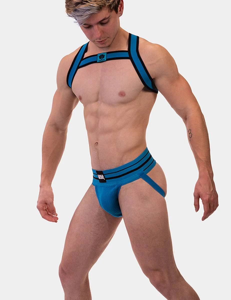 The Barcode Berlin harness Colin is a classic elastic harness with a reasonable price. Made of bright colors including Pink, Green, Orange and Blue this harness is sure to add some decoration to your chest. Pair this harness with the matching jock (Andreus) and the Barcode Gym socks (both sold separately).
