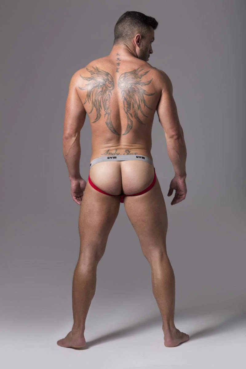 GYM 1" Swimmer/Runner jockstrap designed for swimming and moderate exercise made by GYM Jockstrap, Jockstraps.com own brand. These jockstraps feature a narrow waistband and are great for swimming activities. Available in White, Black, Grey, Red, Yellow or Royal Blue.