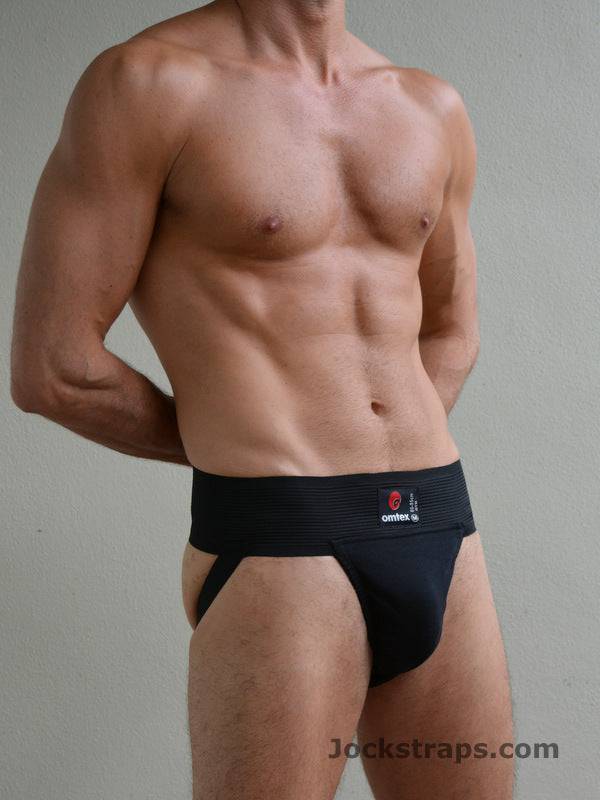 The Omtex Gym supporter is your basic all-cotton jockstrap with a 3" waistband featuring the Omtex logo on the waistband.Ā The soft cotton pouch is made of two layers of fabric for added support.Ā Includes 1" leg straps in the same color as the waistband.Ā This jock is in solid colors.